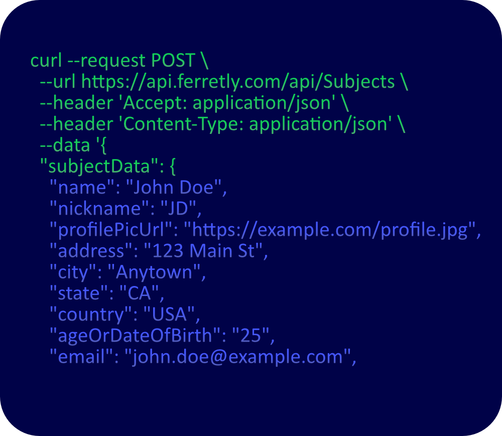 Build custom integrations with Ferretly's robust API: Add subjects, track progress, retrieve scores & flagged posts, and more. Click Get started below to request your private API key.